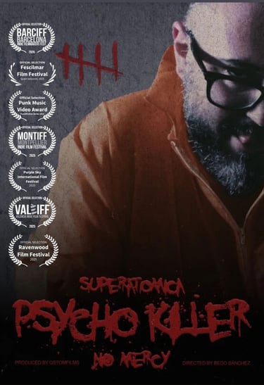 Psycho Killer No Mercy is the music video Qstom Films created for Superatómica’s song Psycho Killer - No Mercy, included in their album New Planet Same Sin. Directed by Bego Sánchez and produced by Qstom Films, the project also featured the collaboration of Mireia Sagarra and Xavi Escola, along with the participation of the band members and, most notably, their vocalist Sergio Bieto.